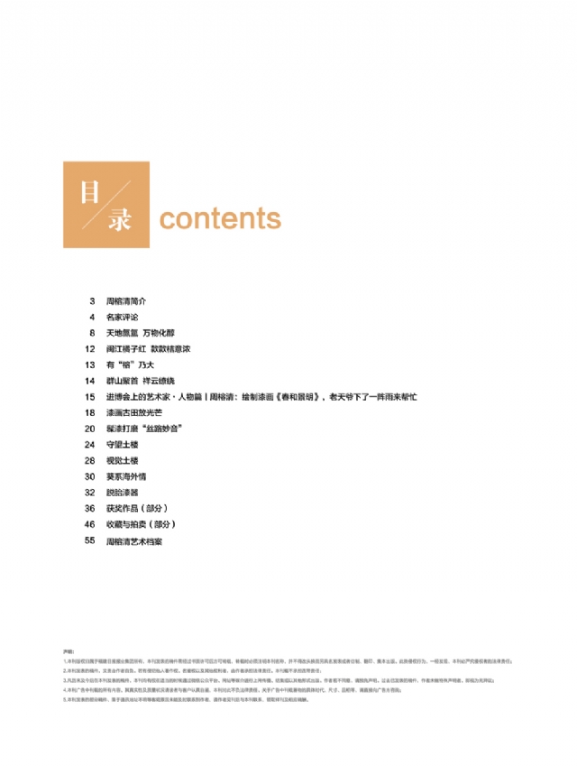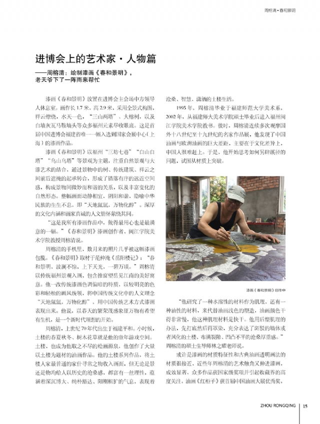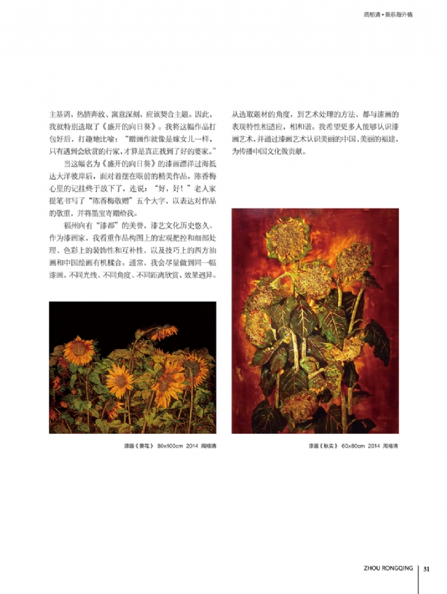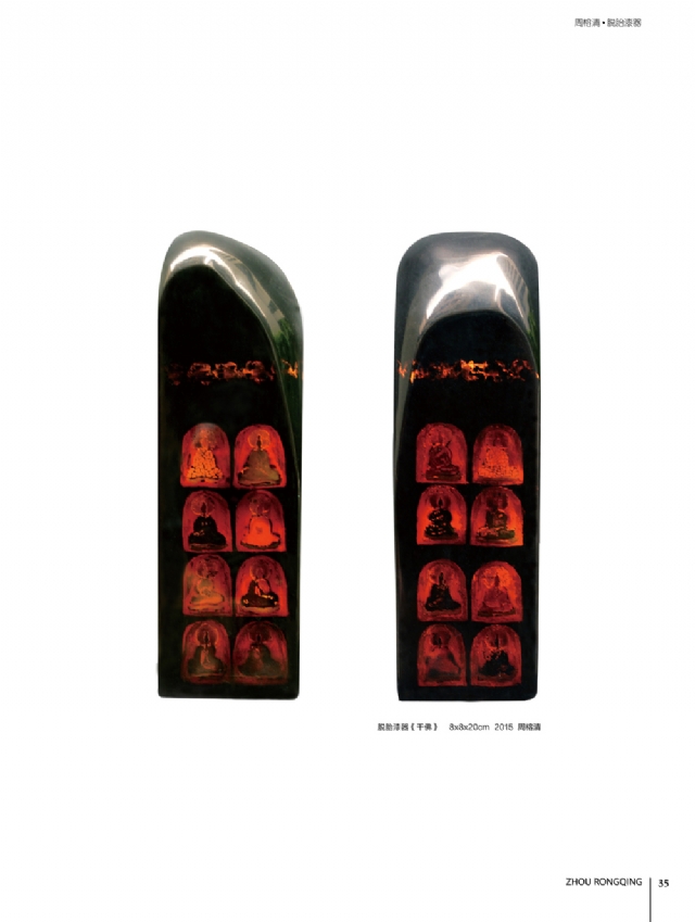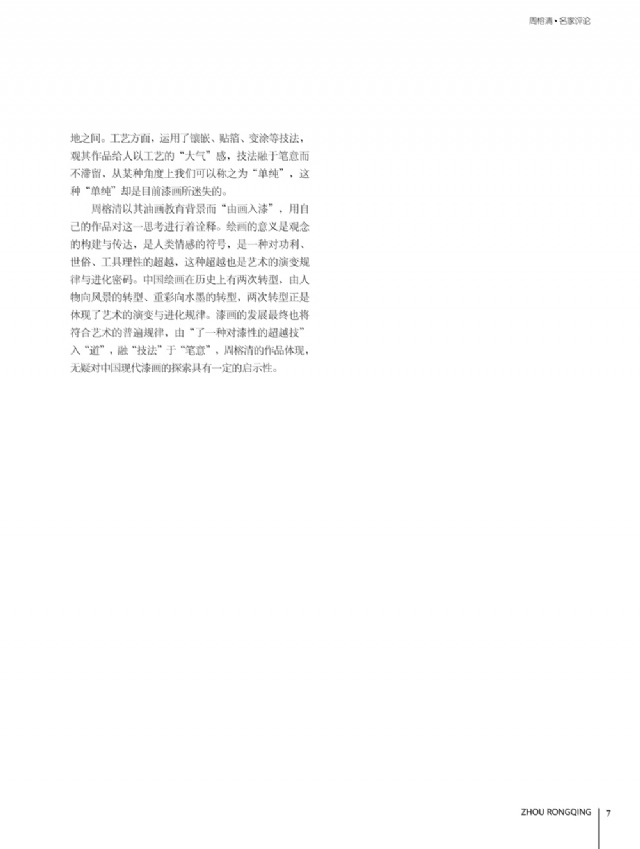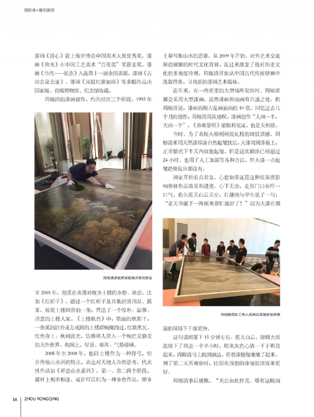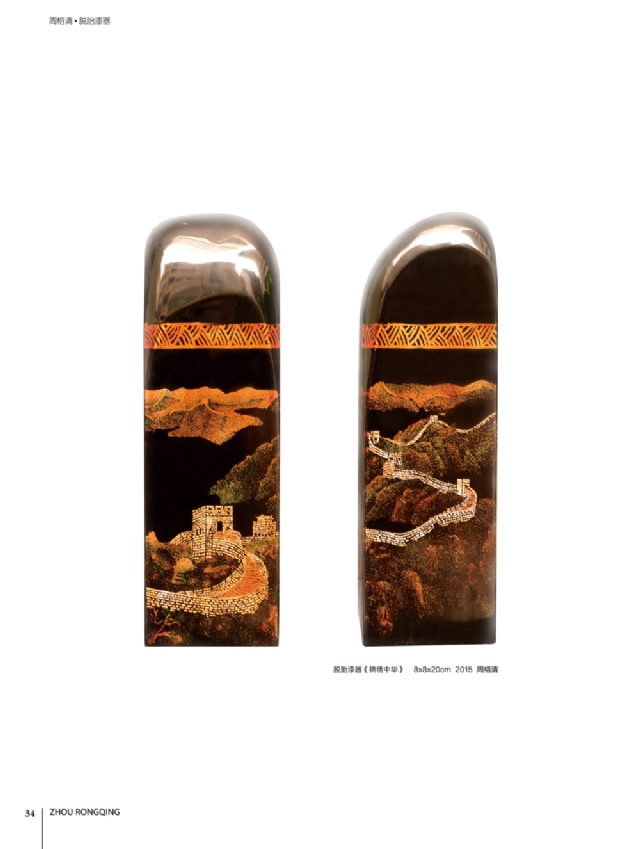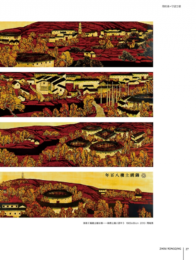 歷時多年的沉淀,我的這本畫冊《東方收藏一周榕清漆藝術??方K于問世了心中不免如釋重負。記得小學時,我的處女作《農(nóng)家大肥豬》被老師貼到當時家鄉(xiāng)最繁華電影院的櫥窗里,當我把這一消息告訴家人和同學時,那種滿足感和成就感至今令人回味,也許從那時起我就與畫畫結下不解之緣。上大學以后,對故園的深切眷戀,使我不知不覺又拿起畫筆描繪家鄉(xiāng)的山山水水和那樸實、善良的人們夢里時常神游的神秘而厚重的土樓自然而然成為我創(chuàng)作的主題。記得我在上大學三年級時,對中國民間漆藝有著濃厚的興趣,特別喜歡福州脫胎漆器上的大漆高貴質(zhì)感和表現(xiàn)力,因此白天上油畫班的課程,晚上偷偷自學漆畫,隨著時間的推移,漸漸地被大漆“如漆似膠”的“粘住了。因此也由對油畫的興趣逐步轉(zhuǎn)移到漆畫創(chuàng)作上。