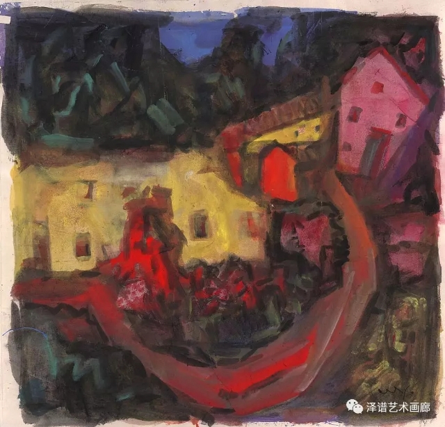 在他水彩作品的畫法中將水分的意味發(fā)揮到極致,使水與色達(dá)到真正飽和交融的狀態(tài)。傳統(tǒng)西方水彩畫中,水只起到調(diào)節(jié)色彩濃淡度的作用,以表現(xiàn)色彩為主,水分的藝術(shù)效果并不明顯。而在他的水彩作品中,由于受到傳統(tǒng)水墨畫的影響,將水以色彩的形式表現(xiàn)出來,并且添加了以墨色破墨色的藝術(shù)效果,形成了酣暢淋漓的視覺效果。