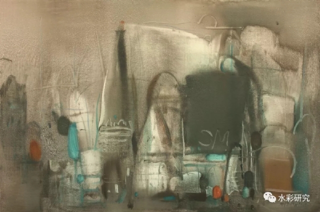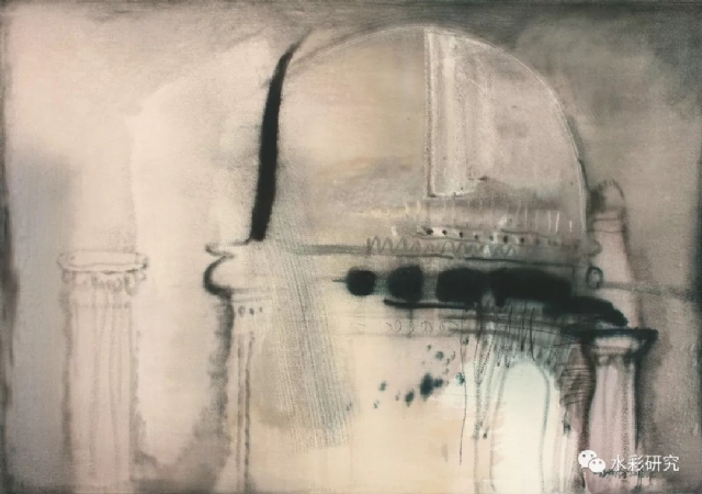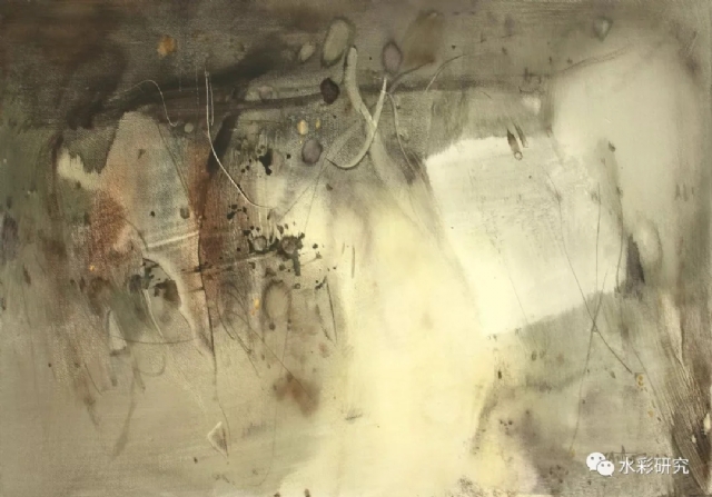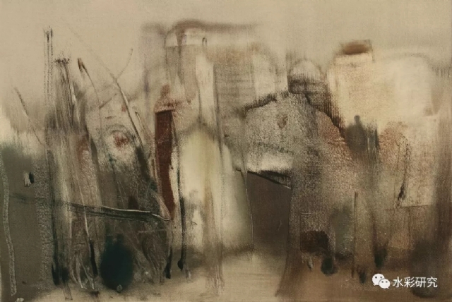 然而,水彩畫的矛盾或死穴也常在于此:其偶然性恰是其材料視覺呈現(xiàn)的必然結(jié)果。亦即,所有人都偶然了,所有的人畫得趣味類似也就成為必然的了!這給了我們有益的啟示:越是追求或滿足于材料的固有效果,就越是將材料的運用局限在了它最原始、天然的呈現(xiàn)方式之中。這是一個淺顯但卻極易被其原始趣味遮蔽的語言障礙。