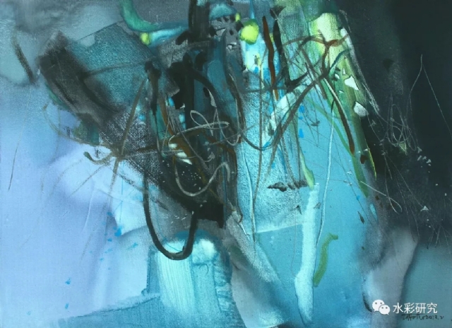有鑒于此,畫種的語言要拓展,靠得絕不僅僅是它的顯著的天然性質(zhì)(天然即必然)——作為原始的契機,材料的天然特性只是技術(shù)系統(tǒng)研發(fā)的肇端。水彩畫在這個端點上,時至今日其趣味的可能性已近乎窮盡,當你在微信推特上看到海量的鄉(xiāng)野水彩寫生時,這種感受尤為強烈。是故,水彩畫應(yīng)當堅持自身在與當下現(xiàn)實持續(xù)發(fā)生關(guān)系中獲得其內(nèi)生之研創(chuàng)活力,以保證其作為一種視覺思維的現(xiàn)實銳度而不遲滯于養(yǎng)生和娛樂活動。