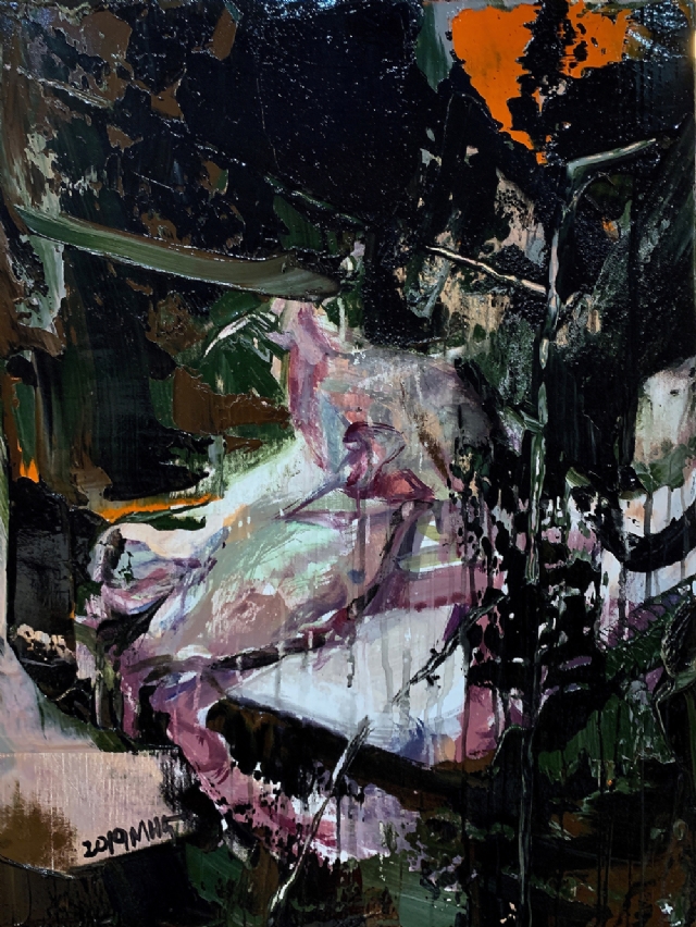 就象平常我想喝的烈酒一樣,我的繪畫處于一種即將被動(dòng)的情緒下進(jìn)行。首先給我?guī)?lái)的是平靜,之后是焦慮、不安、狂躁,直至顛覆著繪畫的極致情緒,從狂亂的線或形中尋找不同的圖式,來(lái)切換心里的位置,那種狂亂的偶然性在我內(nèi)心極其矛盾,我不斷尋找出自身的問(wèn)題與平衡,一種不曾體驗(yàn)過(guò)的形與色,擺脫束縛與困境,推動(dòng)我走進(jìn)復(fù)雜的心境,去扒開我感悟到的繪畫另一個(gè)世界。