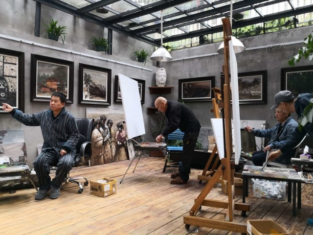 與老師向光、省文聯(lián)主席油畫家李昂、畫友們在一起