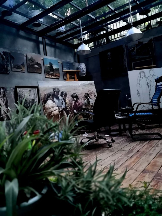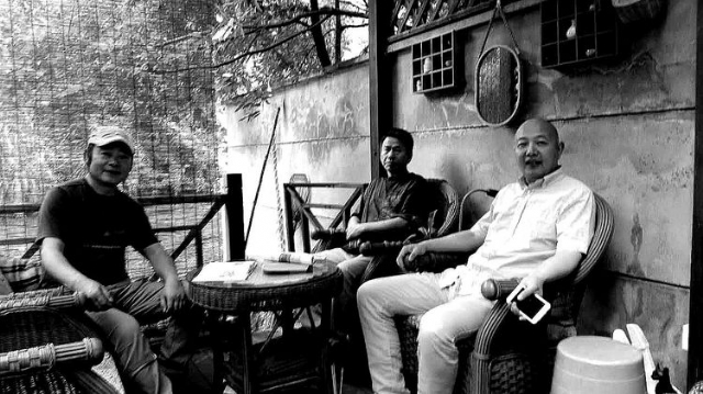 與畫友郭達(dá)平老師、四川美院研究生院長吳松先生在一起
