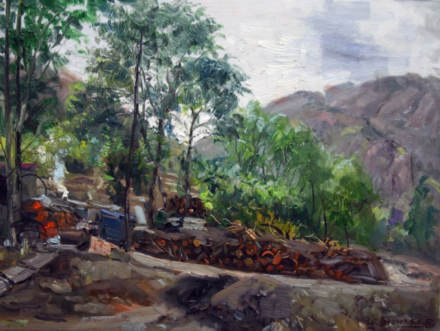 《大山里燒炭的窯》布面油畫,作者:石廣武,尺寸:60X80(CM)