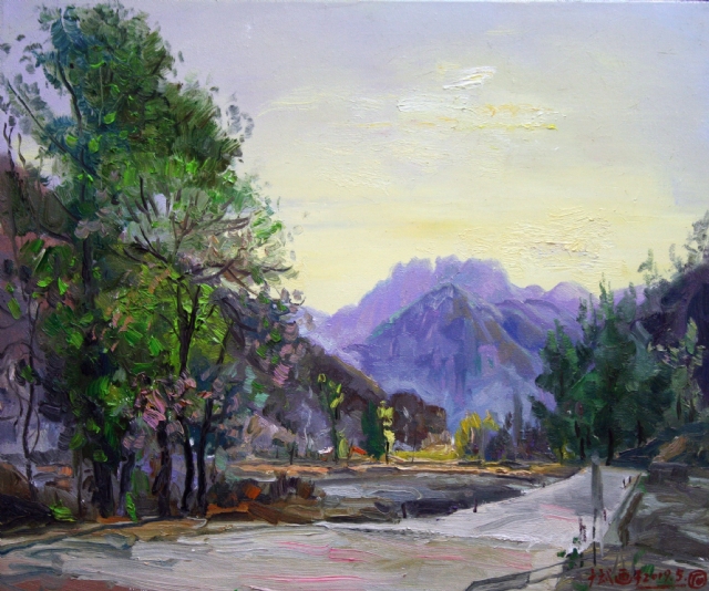 《五月的九頂山》布面油畫,作者:石廣武,尺寸:60X80(CM)