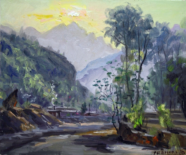 《曉村》布面油畫,作者:石廣武,尺寸:60X50(CM)