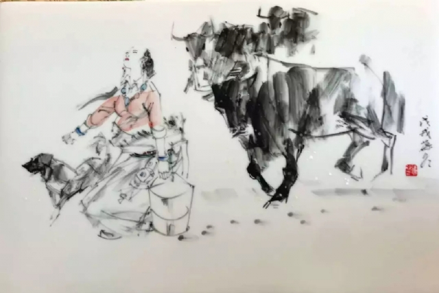 2019年3月間,福建省美協(xié)中國人物畫藝委會(huì)收到德化縣億加藝品有限公司邀請,組織部分畫家分批到德化進(jìn)行現(xiàn)場創(chuàng)作,不同于宣紙的新型瓷板白玉般晶瑩剔透,這一特殊材質(zhì)能很好地還原水痕墨跡,引起了畫家們的極大興趣,大家饒有興致地探索“瓷性”奧妙,嘗試駕嘆“瓷語”的性格,用這種新材料、新視角、新手法創(chuàng)作出來的作品,經(jīng)過高溫?zé)疲凇八鸾蝗凇敝猩l(fā)出了一種超乎尋常的魅力,既保留了寫意畫的筆性墨趣,同時(shí)讓瓷板上的墨彩留痕更見神韻,增加了一種從內(nèi)而外顯滲出來的神奇感覺??芍^入“瓷”三分,力透“瓷”背,互為包容,相得益彰,徹底改變了畫家們對原有瓷面繪畫的看法。與我們熟悉的宣紙材質(zhì)相比較,新型瓷板及顏料確實(shí)多了一些不可思議又耐人細(xì)細(xì)玩味的美妙。