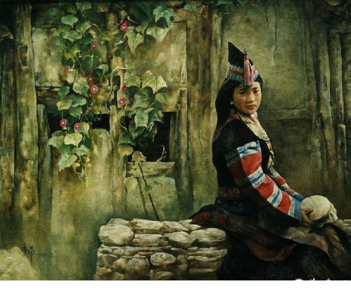生長在軍區(qū)大院,當(dāng)過兵,濡染一身剛氣。進(jìn)大學(xué)、研讀歷史,走進(jìn)大山、剖閱人性,諸多因素洇進(jìn)他的作品里。貴州這塊得天獨(dú)厚的土地,豐富多彩的民族形式,給李昂提供了有別于大同繪畫語言的表達(dá)方式。歐洲人的油畫技能,被他揉進(jìn)了少數(shù)民族的靈與形里:塌塌的鼻梁、厚厚的嘴唇、斑斕的服飾花紋與陽光在他的筆下混響。繪畫對于李昂來說,不是工作、亦不是事業(yè)、更不是求生手段,而是一種生活方式,清教徒朝圣一般,走一條永無盡頭的路。一生用心和思想去看沿途的風(fēng)景,心靈從塵市的喧囂中浮出,用思想之露去洗滌自我與觀者的心靈。在我們早已司空見慣、麻木不仁的視覺存在中用心去審視、掃描并發(fā)現(xiàn)那些異態(tài)存在,并以審美形式和思想者的思維式樣展示于人。我們這個時代,一夜暴富不是夢,暴富的造神運(yùn)動使許多人靈魂出竅、暈頭轉(zhuǎn)向,心靈的天線已被每天潮水般的信息沖擊得面目全非,繪畫早已失去人們想象中的浪漫,它和物質(zhì)利益相去甚遠(yuǎn),它需要象農(nóng)民一樣地去艱苦勞作而又難于得到豐厚的物質(zhì)回報,沒有眾星捧月般的喝彩以及終結(jié)者的獎杯。李昂先生數(shù)十年在繁忙的行政工作之余,持之以恒,碩果累累。