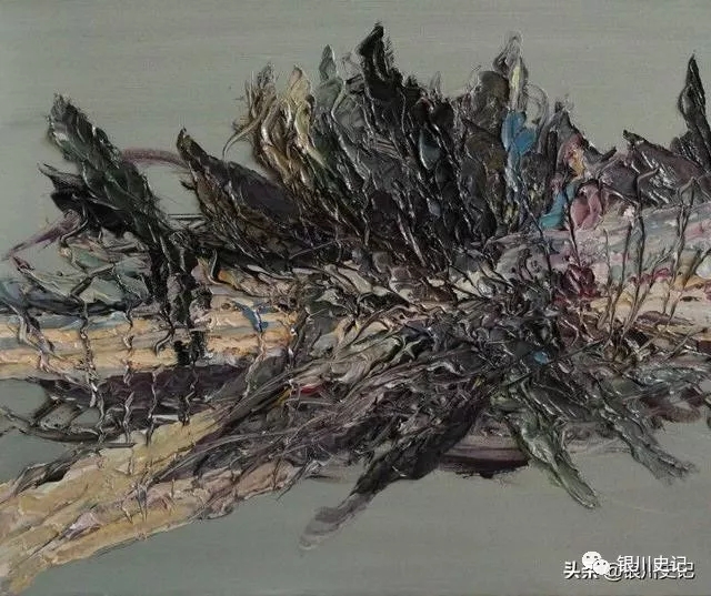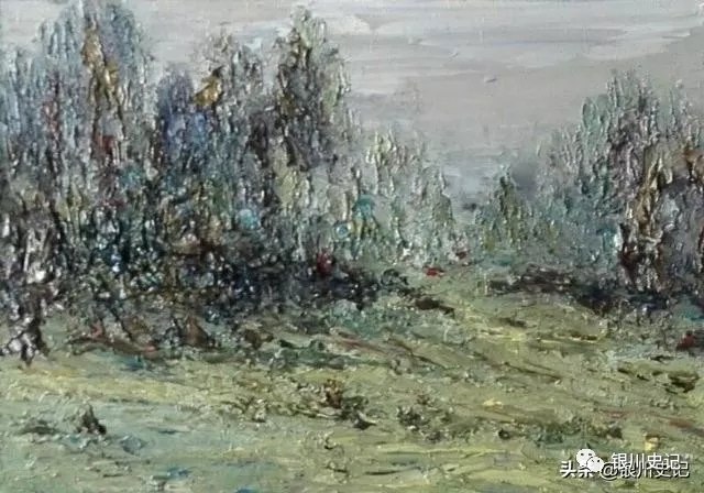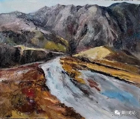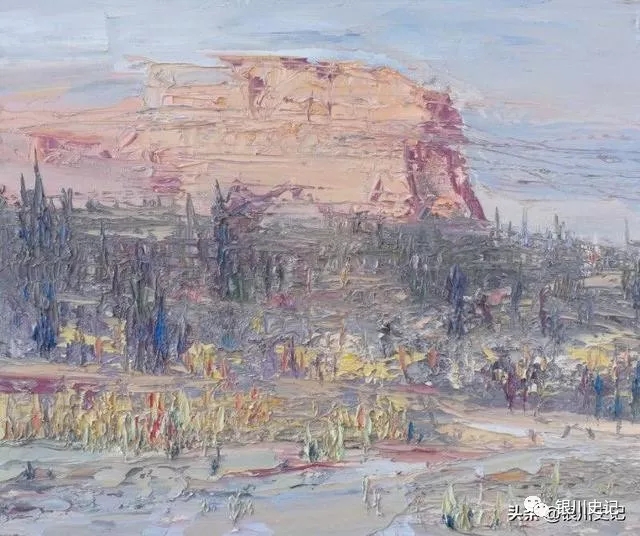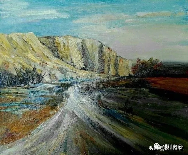 他的畫風就像西北的漢子一樣,粗曠,豪爽、甚至有一絲野蠻。西北風景是沒有風景的風景,只有用心,用魂去體驗和感悟它的雄渾與噴薄才能畫出那種厚重。