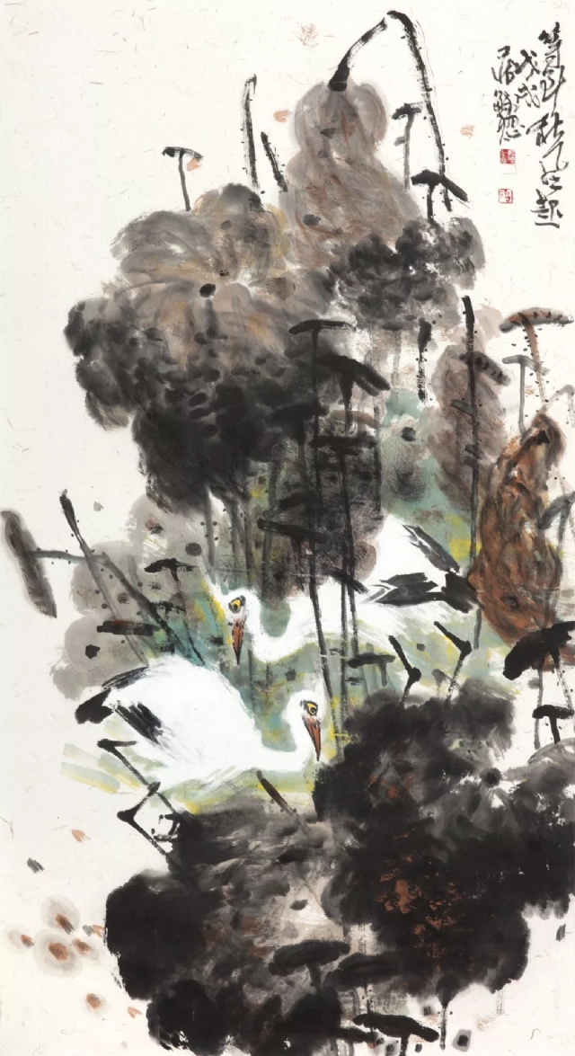 莊毓聰:談到與哲學(xué)的聯(lián)系,必須上溯根源才能找到答案。中國(guó)哲學(xué)是中國(guó)文化的上層,哲學(xué)的發(fā)源,就是先民們的智慧與意識(shí)表現(xiàn)。隨著中國(guó)畫(huà)的發(fā)展特別是寫(xiě)意畫(huà),乃至大寫(xiě)意的產(chǎn)生、成熟,中國(guó)哲學(xué)思想,愈來(lái)愈成為中國(guó)畫(huà)根基。我們從字面上看“寫(xiě)意”,所謂意,就是我們站立在文化厚土上,關(guān)于人文的思考,這即是我們傳統(tǒng)哲學(xué)的思辨與領(lǐng)域。中國(guó)寫(xiě)意畫(huà)論里“技可進(jìn)乎道,藝可通乎神”。道是宇宙的本體和生命的體悟,從思想上,指導(dǎo)和推動(dòng)著我們中國(guó)寫(xiě)意畫(huà)的審美高度與厚度。