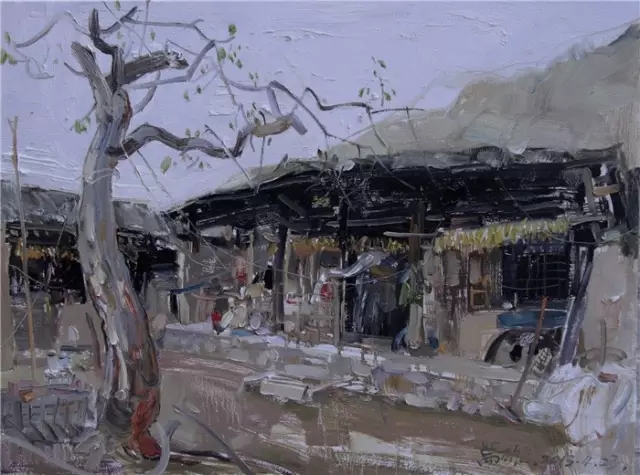 事實上,藝術家本質(zhì)來講就帶有一種先知色彩,理應是更有覺悟性的。因為生命本身就是一種探索,一種發(fā)現(xiàn)之旅;時刻不停的向著未知出發(fā),向著新意挖掘。藝術家的創(chuàng)作不是一種自欺性的自圓其說,而是一種謙卑領受靈感并努力釋放靈感的信息。藝術家和他的作品是一種相遇,是一種尋找真我的行程,在它樣的精神性活動中所需要的是互相印證,互相言說,互相建造。賈萬雄的生命特質(zhì)和藝術上的努力正是一種突破。他試圖突破一般藝術家常常走不出來的那種平庸、麻木、呆滯與刻板。他的油畫作品里面所透露的信息是發(fā)現(xiàn)、是開拓、是挖掘、是分享??v觀他的油畫作品,畫面中筆法輕描淡寫,但卻看出他的內(nèi)心有一種深重的雕刻愿望。刻劃本身,就是一種強調(diào)、是自我和環(huán)境之間達成一種精神上的契合和對觀闡釋。我們考察賈萬雄油畫語言的來源便看到,一方面他從西方繪畫中找到那種繪畫性,也從東方繪畫中運用那種寫意性;大量采用了中國傳統(tǒng)畫意境與表現(xiàn)方法、以及畫面的處理方法與西方的那種繪畫性進行整合,各自凸顯又和諧一體。在嚴謹?shù)膶憣嵟c激情的表現(xiàn)中間收住了一個合宜性支點:遠看他的作品,透出嚴謹?shù)膶憣嵭?,近看他的作品,則很有強烈的表現(xiàn)性,具有隨意、自由和灑脫之氣。畫面中運用著中國畫里面那種皴筆技法和巧妙的留白;使得作品很鮮活,同時也渾然一體,收放自如,就賈萬雄創(chuàng)作時所面對要處理的大場景以及眼前的山坡、溝壑、窯洞、與樹木等,都是很難把握的事情,賈萬雄能獲得如此多的靈感,創(chuàng)作出豐富有內(nèi)含的作品,實則不易。如今,西部當代藝術還是比較薄弱,在當代藝術的傳統(tǒng)性吸收與傳統(tǒng)藝術的當代性轉化面前,實在是需要付出極大的努力,無論從文化性還是從地域性上來講,陜西都是最重要的文化要塞,今天生活在那里的當代藝術家有著需要解決的重大課題;象賈萬雄這樣的藝術家在那里,對當?shù)貋碚f,是一股不容忽視力量,是一種重要的存在和言說,也是一種責任。