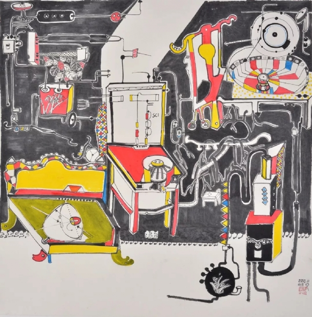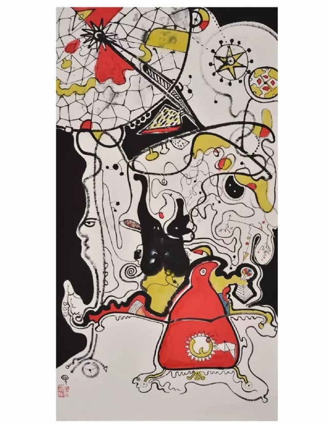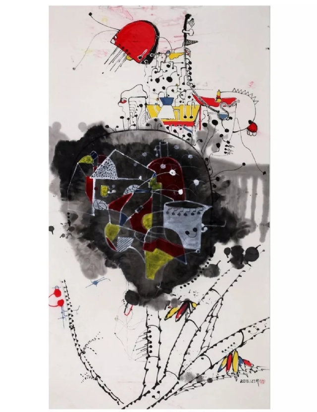 他所表達(dá)的思想均與生活現(xiàn)實(shí)有強(qiáng)烈的交匯,何繼致力于詩性的水墨涂鴉呈現(xiàn)出后工業(yè)文明種種鏡像帶給了我們啟示。