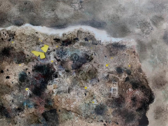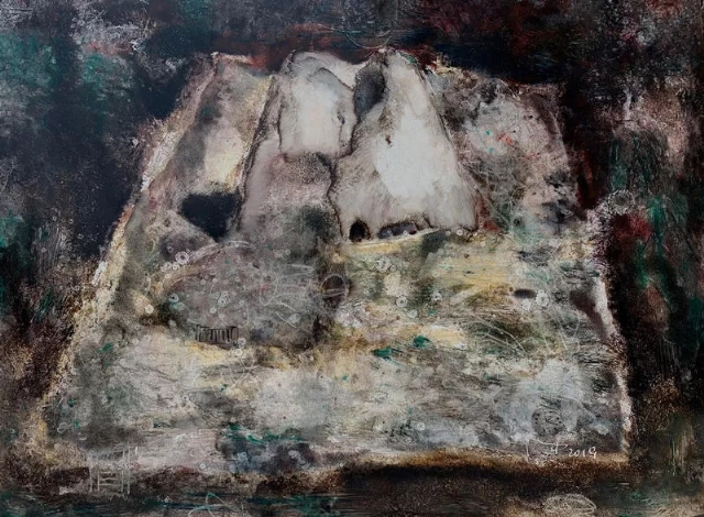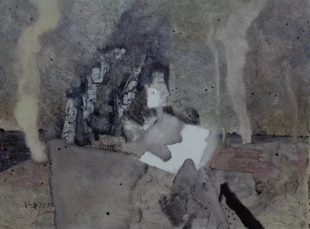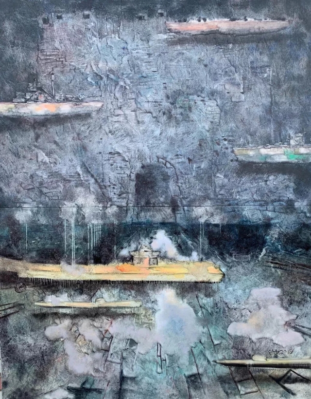 看似具像的畫面,實際上以意象的筆耕揉造,所有過程無非是種帶著情緒的思想之力姿肆奔流,好象在進(jìn)行著一場千軍萬馬的戰(zhàn)爭,完成的畫面便成了戰(zhàn)火熄滅時結(jié)果。