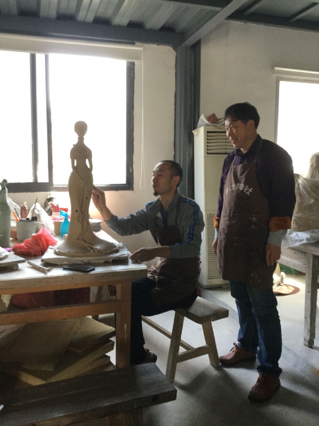 在陳烙銘(景德鎮(zhèn)陶雕非遺傳承人)工作室學(xué)習(xí)