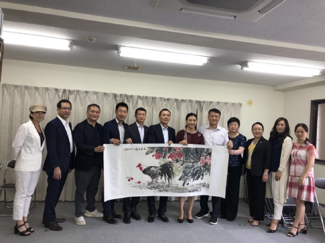 2019年6月10日,中國致公黨漳州市委副主委王淑娟一行前往日本考察調(diào)研,并代表致公黨漳州市委向日本福建經(jīng)濟(jì)文化促進(jìn)會贈送一幅鄭坤華國畫作品巜大吉大利》