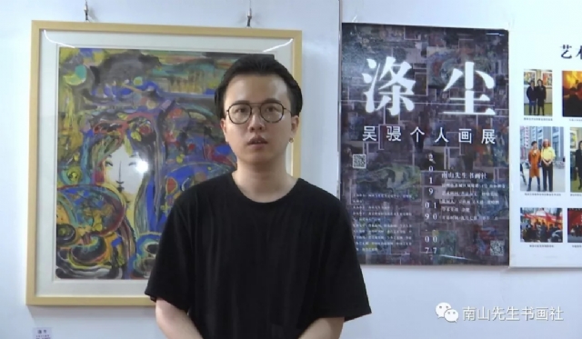 南山先生書(shū)畫(huà)社社長(zhǎng),福大廈門(mén)工藝美院繪畫(huà)系老師,畫(huà)展的學(xué)術(shù)主持余鍵女士致辭:吳骎,是天生的藝術(shù)家,創(chuàng)作思路是不用打稿,潑墨、潑彩都由心而生,藝術(shù)本真的東西,從畫(huà)面本身就能流露出來(lái)。