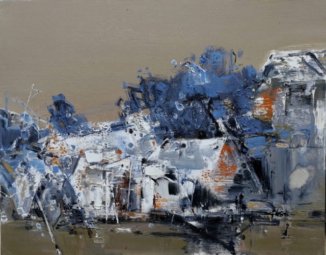 2014年,他開(kāi)始喜歡畫老樹(shù)。也許畫樹(shù)能給他的畫增加表現(xiàn)性,盤龍般纏繞的樹(shù)枝在他的筆下耐心的傾述著古老的故事……,他畫了很多老樹(shù)。去風(fēng)景寫生地第一件事就是找有沒(méi)有老樹(shù)。畫老樹(shù)時(shí)他練就了用小筆轉(zhuǎn)彎的技巧,這對(duì)國(guó)畫家可能不算什么,但對(duì)油畫家來(lái)說(shuō)是需要極大耐心的。