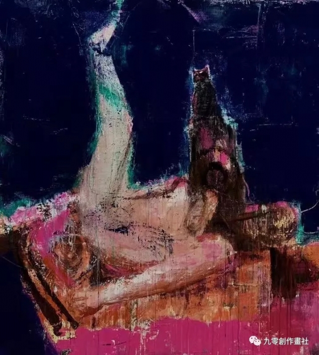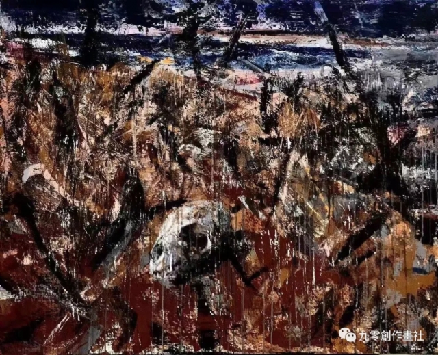 在經(jīng)營(yíng)作品中的熟練運(yùn)用。看他作畫的過程,很自然地會(huì)生發(fā)出來對(duì)畫面創(chuàng)造的不確定性而盡顯神秘美的享受,和對(duì)他藝術(shù)所表達(dá)出新的可能性的無限期待。