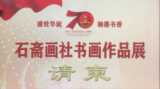 慶祝中華人民共和國(guó)成立70周年。 石齋畫社書畫作品展定于2019年9月29日上午9點(diǎn)10分舉行開幕儀式。敬請(qǐng)光臨
