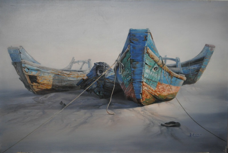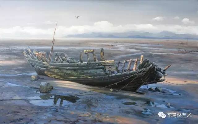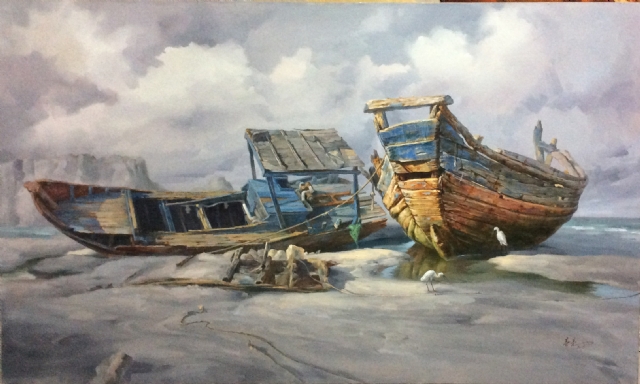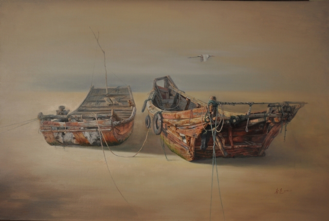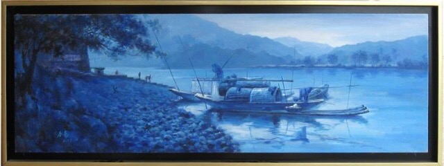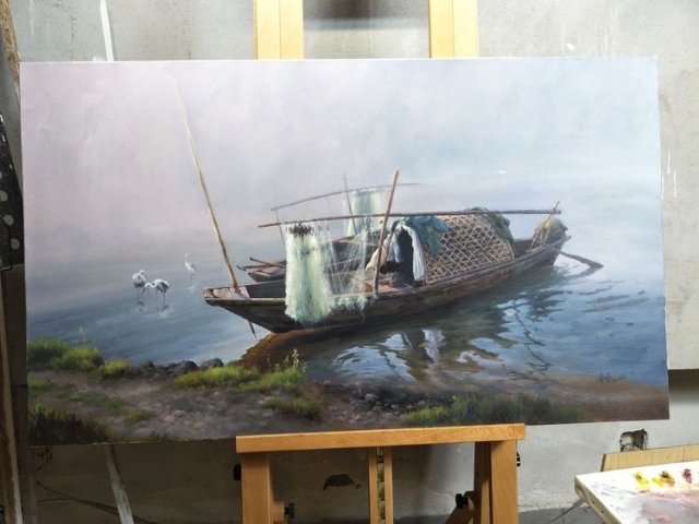 油畫作品《家鄉(xiāng)的烏篷船之二》