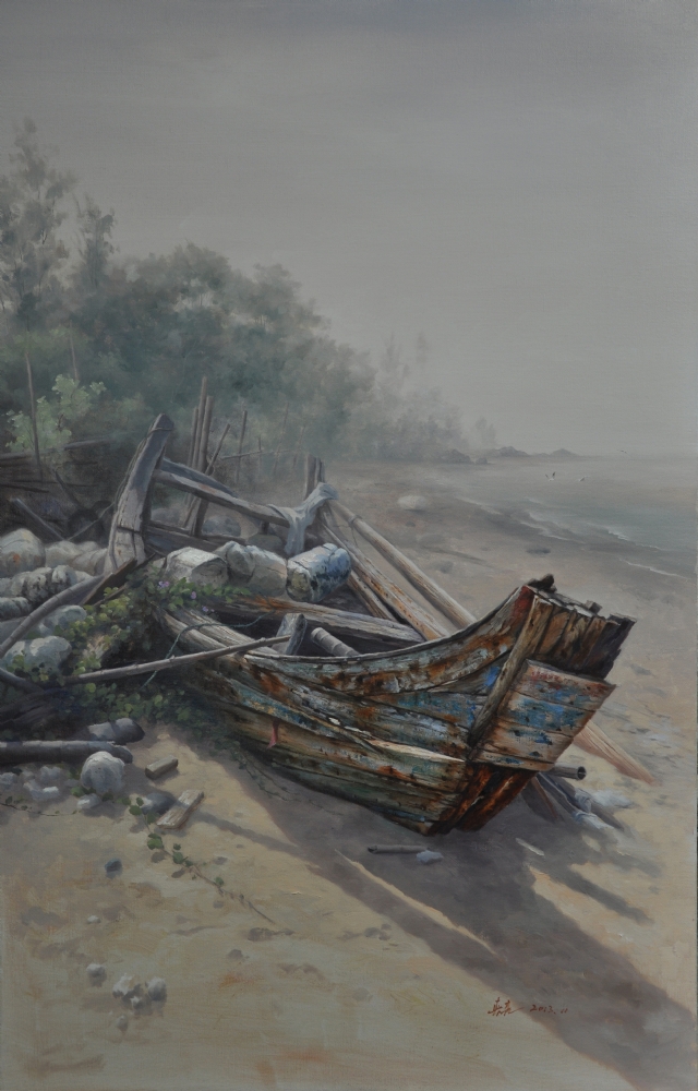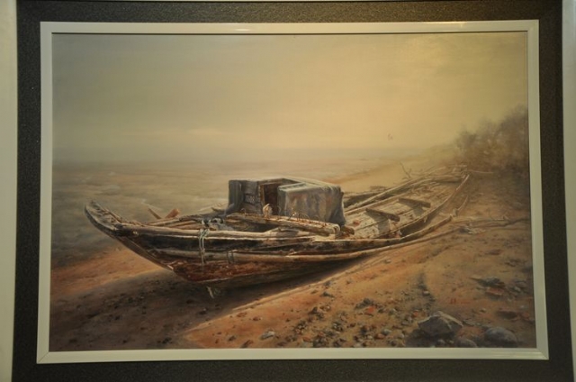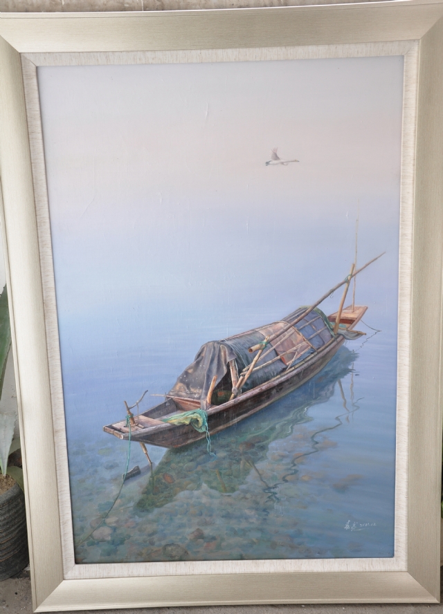 油畫作品《家鄉(xiāng)的烏篷船之一》