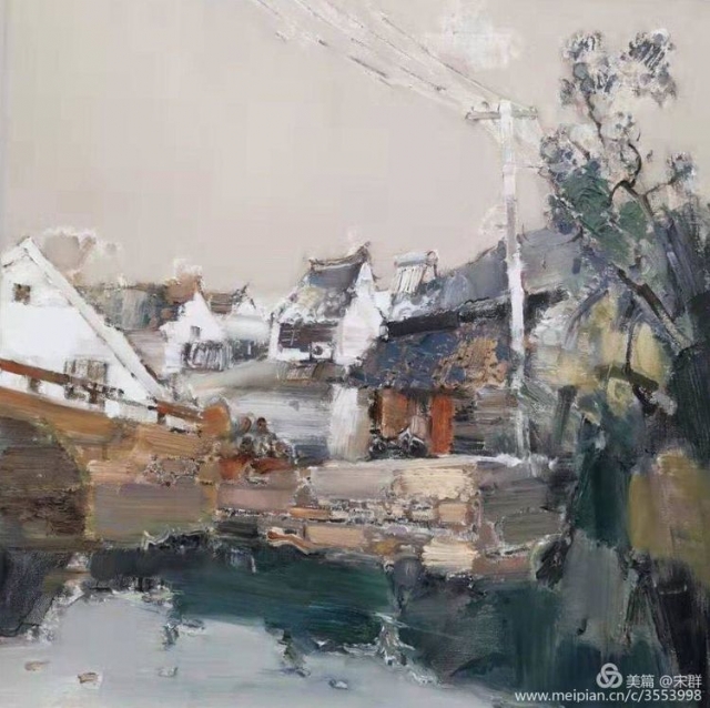 朱家良的作品色彩漂亮,深沉的灰系列用的高級,協(xié)調(diào)間高雅,對比中明快。畫面經(jīng)營的極具美感,用筆肯定而自信,流暢的線條穿行其中,色塊銜接之間靜動相柔,這是一種理念的交融,而非技術(shù)。繪畫并不是要把畫怎樣畫好,這是技術(shù)問題,具備了技術(shù)以后,更重要的是理念與情懷。作品比眼界,并不是比技術(shù),好作品會令人眼前一亮,對靈魂是一種凈化,一種升華。