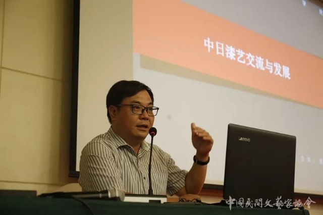 開班儀式結(jié)束后,周榕清教授,廣東省肇慶學(xué)院美術(shù)學(xué)院副院長李小軍教授分別為學(xué)員帶來《中日漆藝交流與發(fā)展》《廣東漆藝的教育與創(chuàng)作》主題講座。當(dāng)晚,還舉辦了行業(yè)行風(fēng)建設(shè)座談會,學(xué)員們暢所欲言,從各自豐富的從藝經(jīng)驗(yàn)出發(fā),交流了對漆藝行業(yè)規(guī)范、行業(yè)標(biāo)準(zhǔn)的看法和建議。