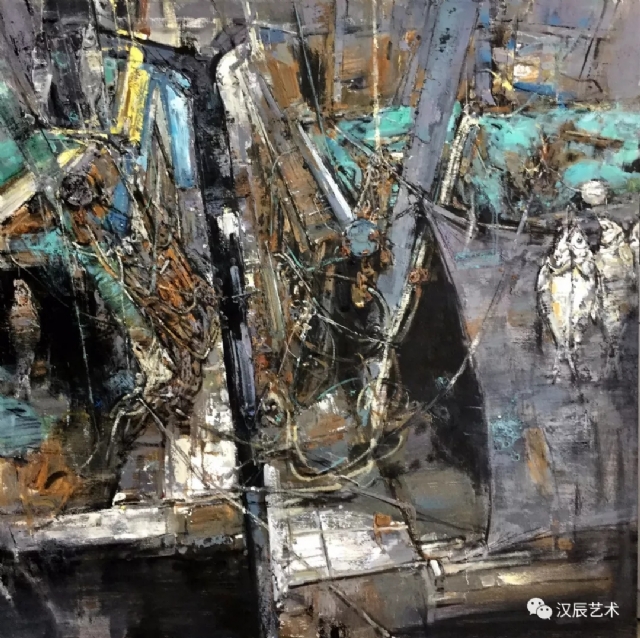 劉長清油畫作品:《僑港碼頭》70×70cm