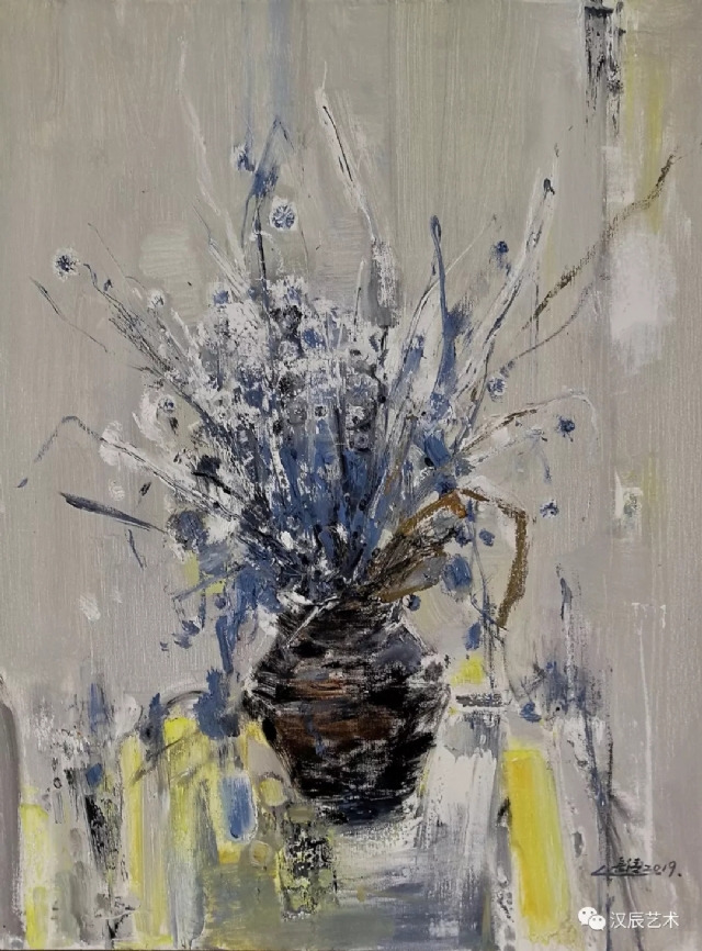 劉長清油畫作品:《太行藍(lán)刺頭》80×100cm