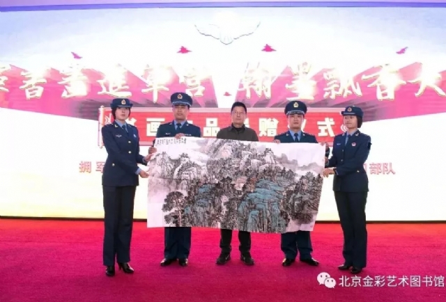 在新中國成立70周年、空軍成立70周年之際,為了慰問親人解放軍,北京金彩藝術圖書館于2019年10月5日-12日,邀請全國名家赴部隊某基地開展“強軍書畫進軍營、翰墨飄香大漠行”活動。