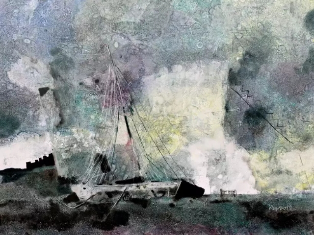 《蔚藍(lán)之夢(mèng)》 紙本綜合 90x120cm 2019 崔治中