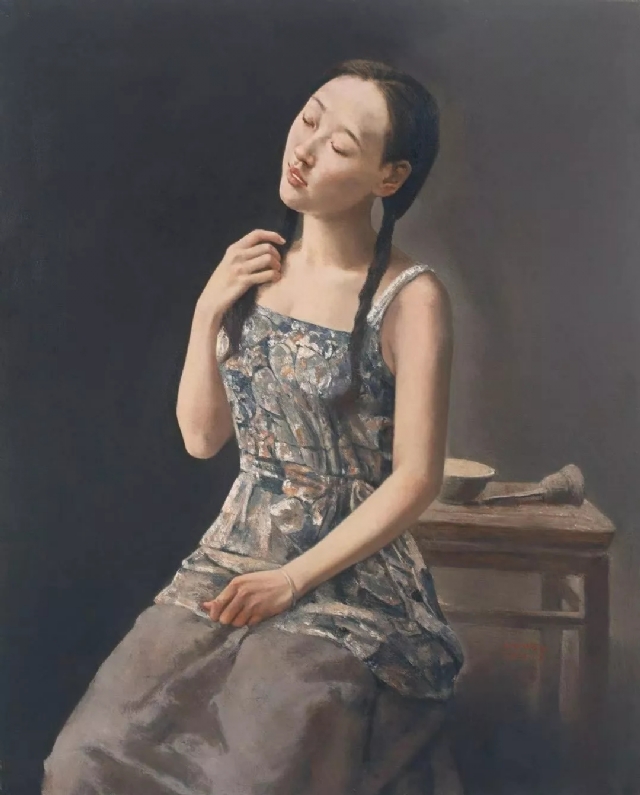 于是我就有了一股創(chuàng)作的沖動(dòng),并努力地把這些模糊的印跡變得清晰:《春風(fēng)又綠》、“像花兒一樣”系列《女孩》、“仲夏之夢(mèng)”系列、“夏日記憶”系列及《雨夏》,就是將生活中平凡的人和事凝固在畫(huà)布上,去體味、去挖掘人生的意味。