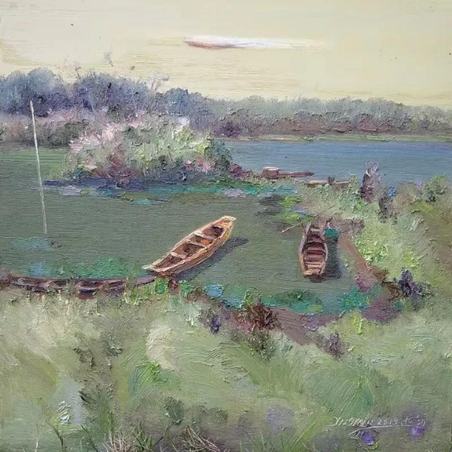 王學(xué)玉《洞庭湖秋韻》60×60cm
