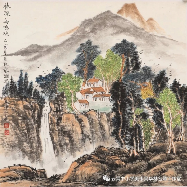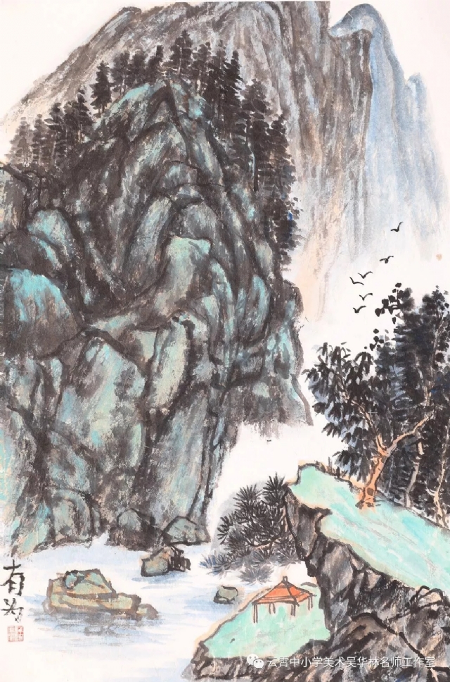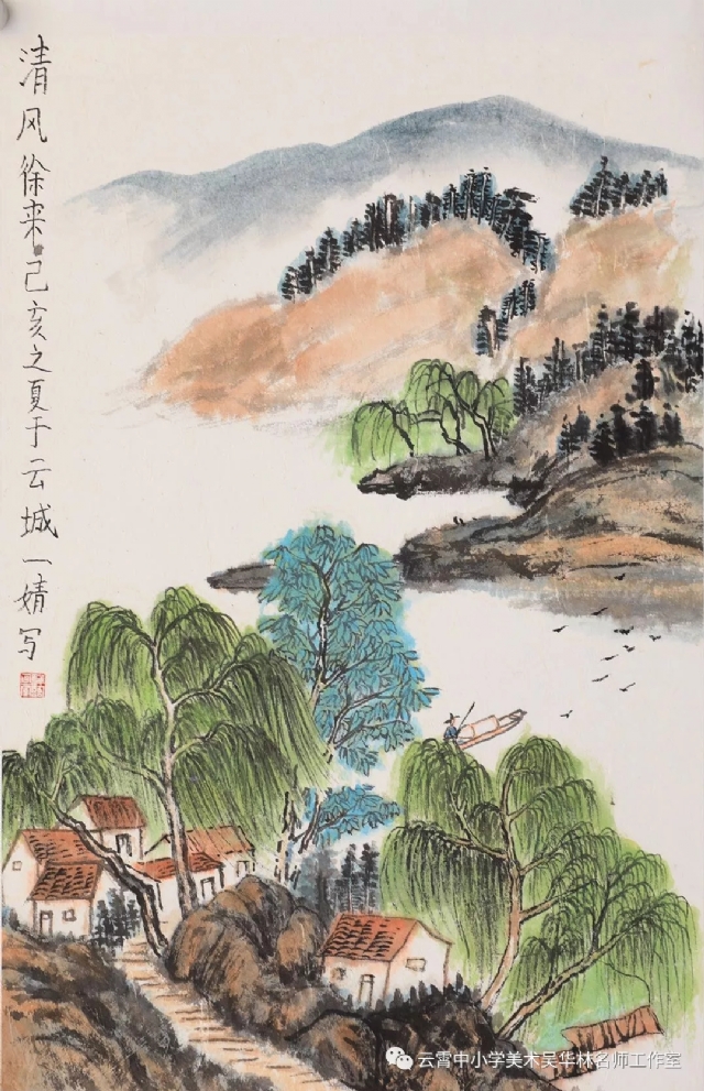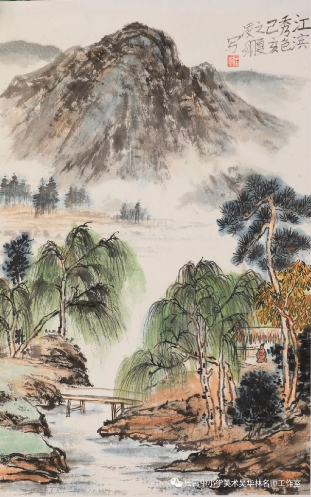 從這次呈現(xiàn)的不同年齡段的學(xué)生作品中,我們可以感受到從作品里頭所傳達(dá)出來的童真童趣和學(xué)生對山水畫的初級感知,老師做了過程性的嘗試,積累了第一手的教學(xué)心得與經(jīng)驗。雖然學(xué)生作品筆墨尚稚嫩,設(shè)色也帶有主觀意向,但天真樸實,學(xué)生們在創(chuàng)作過程中愉悅體驗,在得到"線"與"形"鍛煉的同時,感受到畫面潺潺流水、樹木蔥蘢的唯美和云霧后面的虛幻與神秘、從而深切感受到山水畫的意境美。短期內(nèi)的教學(xué),能取得這樣的效果,也實屬不易。我們也期待,在進(jìn)一步的實驗教學(xué)中,再次總結(jié),提煉出一套行之有效的方法并付諸于實踐。