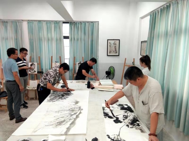 值此開放周之際,2019年10月17日下午漳州三中迎來了漳州幾位書畫名家為學(xué)校師生舉辦書畫講座和筆會(huì)。他們分別是中國美協(xié)會(huì)員、云霄美協(xié)主席吳華林,中國美協(xié)會(huì)員、龍海美協(xié)主席童諄輝,中國書協(xié)會(huì)員、市教育畫院畫師楊耀川,以及漳州市中學(xué)美術(shù)周毅銘名師工作室成員,他們滿懷激情用畫筆謳歌新中國70華誕,描繪學(xué)校日新月異的變化,為明年的漳州三中百年校慶獻(xiàn)上祝福。