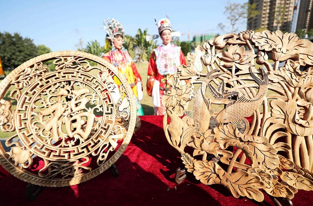 2019年12月2日,福建省漳州市詔安縣,在百家媒體聚焦“花樣漳州”采訪(fǎng)開(kāi)鏡儀式上展示的市級(jí)非遺古香藝雕。當(dāng)日,來(lái)自該縣多個(gè)非遺項(xiàng)目集中亮相,成為活動(dòng)的一大亮點(diǎn)。詔安文化底蘊(yùn)深厚,擁有省級(jí)非遺4個(gè),市級(jí)非遺7個(gè),縣級(jí)非遺29個(gè)。光明網(wǎng)記者 季春紅攝/光明圖片