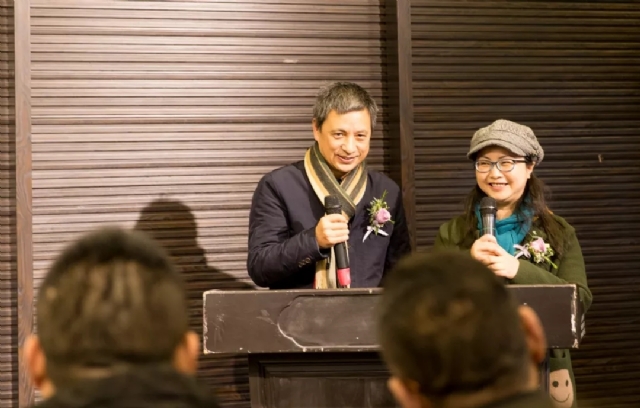 藝術(shù)家崔治中先生、胡山山女士上臺致辭