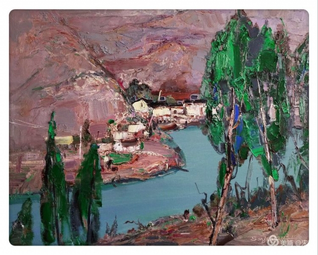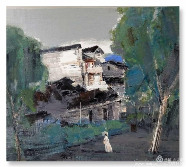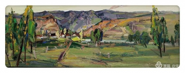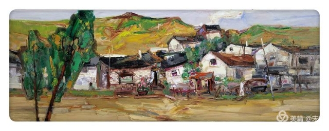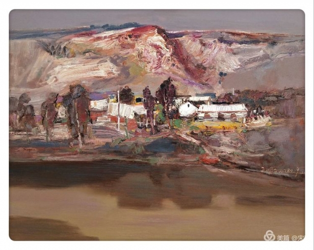 雪景也是畫家喜愛的畫面,簡(jiǎn)潔的色彩更有張力。茫茫原野上的一棵樹,一座房屋,歪歪扭扭的柵欄,很有規(guī)律的地壟溝等等,都是畫家喜愛的元素,它們?cè)诋嬅嫔闲纬闪肆鲃?dòng)的音符,流動(dòng)著北方特色的音律。