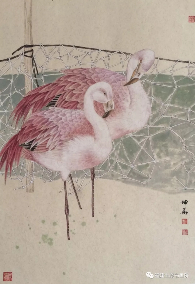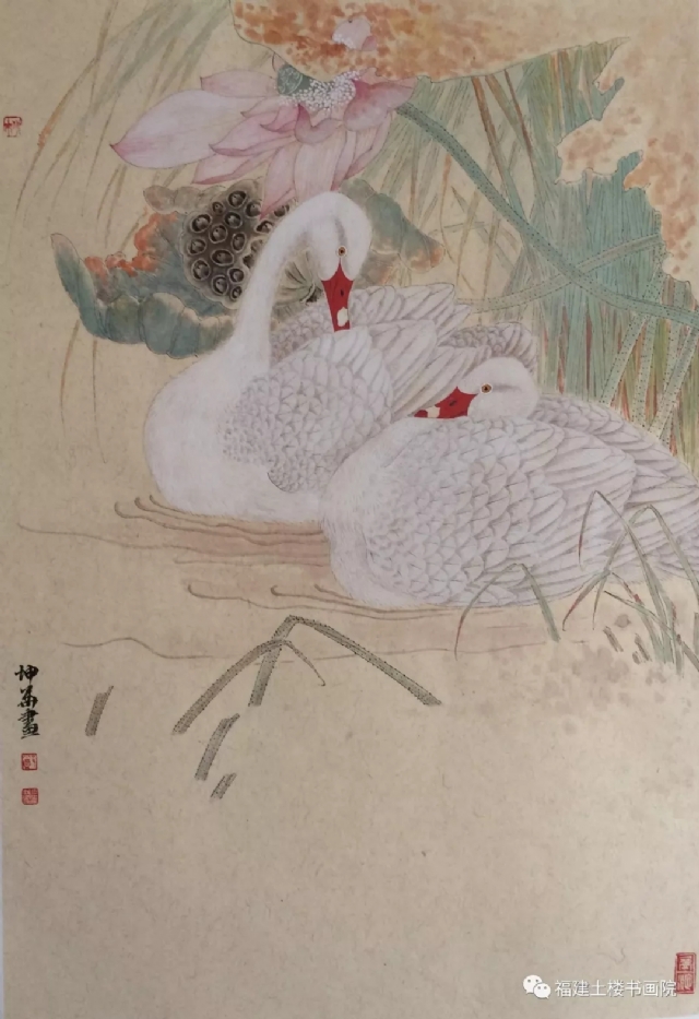 畫家鄭坤華主攻工筆花鳥畫。他的工筆畫遠(yuǎn)承精于審物的宋代“院體”和元代風(fēng)韻,精研古法,深思徹悟,精于變通,吞吐歷代諸家之長(zhǎng),兼收并蓄而融為一體,在傳統(tǒng)與現(xiàn)代的融變與創(chuàng)新中獨(dú)辟蹊徑,將創(chuàng)造力推到一個(gè)完全嶄新的境界,開創(chuàng)了其獨(dú)特的工筆花鳥新圖式。鄭坤華在創(chuàng)作中,把強(qiáng)化和純化了的視覺語(yǔ)言放在了首位。以嚴(yán)謹(jǐn)慎密替代了柔弱浮淺和粗陋松散,莊重典雅抵制喧囂媚俗,新的工筆畫形式終于在轉(zhuǎn)換中脫穎而出練。