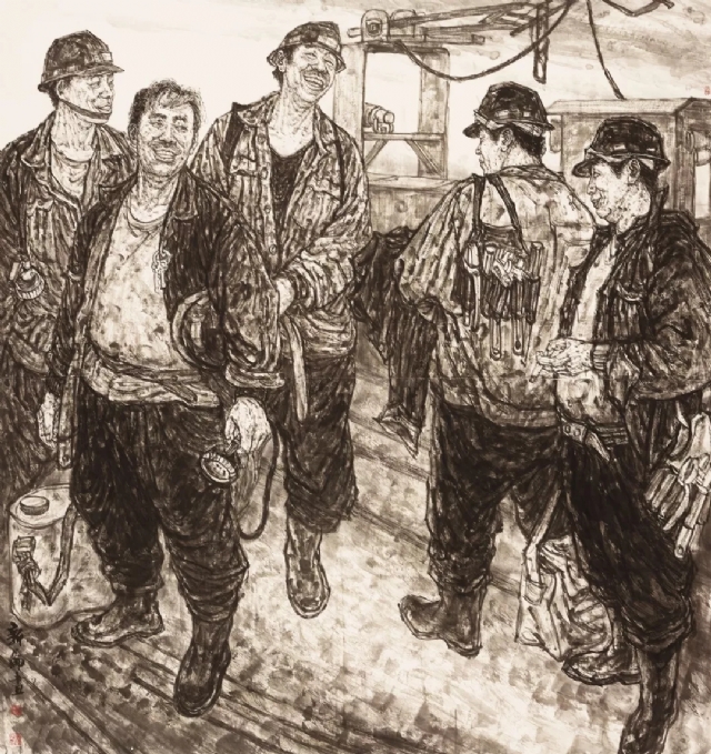王新倫還大膽吸收西方油畫(huà)的一些表現(xiàn)方法,強(qiáng)化一些中國(guó)畫(huà)線條的表現(xiàn)力,增強(qiáng)造型的塑造力。這就是說(shuō),王新倫找到了一些屬于自己的表現(xiàn)手法。的確,中國(guó)畫(huà)在線條上比較圓潤(rùn)飄逸,甚至有些柔靡嫵媚。在中國(guó)畫(huà)中,有些崇山峻嶺雖然巍峨挺拔,氣勢(shì)恢宏,但與人類仍然是和諧的融洽的。而在西方繪畫(huà)中,那些崇高的對(duì)象包含著恐懼的東西。這無(wú)疑能夠令人產(chǎn)生敬畏之感。而人如果沒(méi)有這種敬畏之心,就難以產(chǎn)生悲劇的憂患意識(shí)和超越意識(shí)。王新倫在吸收西方油畫(huà)的一些表現(xiàn)方法時(shí)沒(méi)有汰除那些斧鑿痕跡,而是著力刻畫(huà)了中國(guó)當(dāng)代社會(huì)底層蕓蕓眾生渴望發(fā)展的強(qiáng)烈沖動(dòng),畫(huà)面雄渾而大氣。