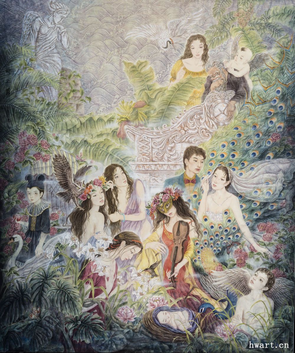 《浮嶼》工筆重彩134x134cm