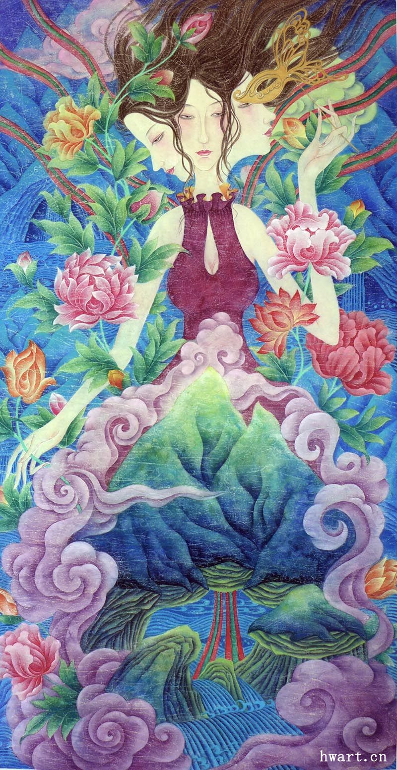 《嫣然》之二工筆重彩,2016年 四尺斗方