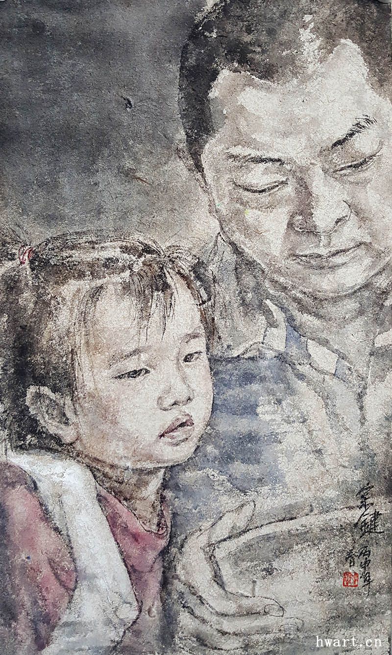 《父女倆》彩墨60x35cm