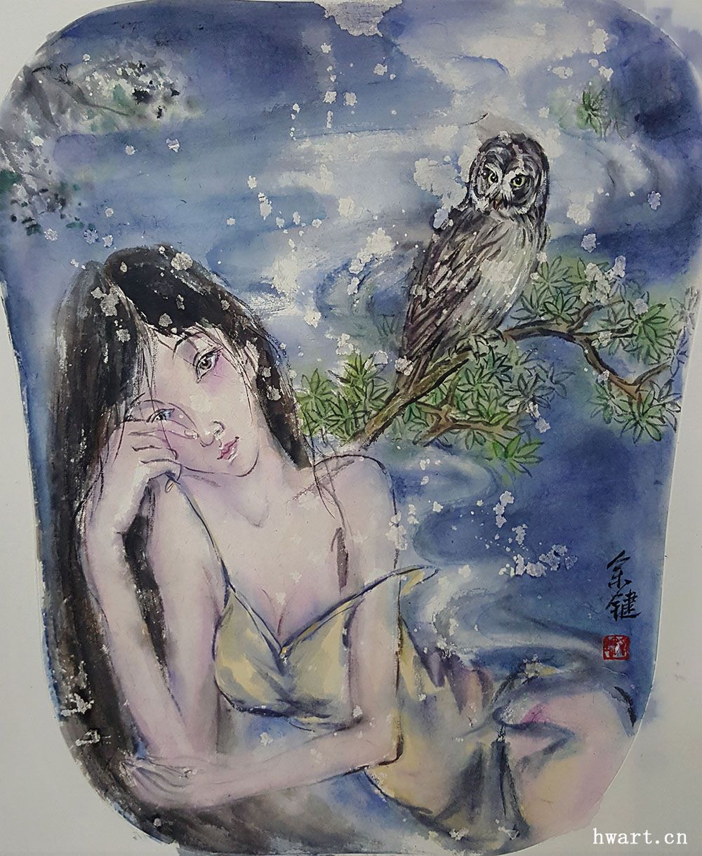 《靜夜2》彩墨60x50cm