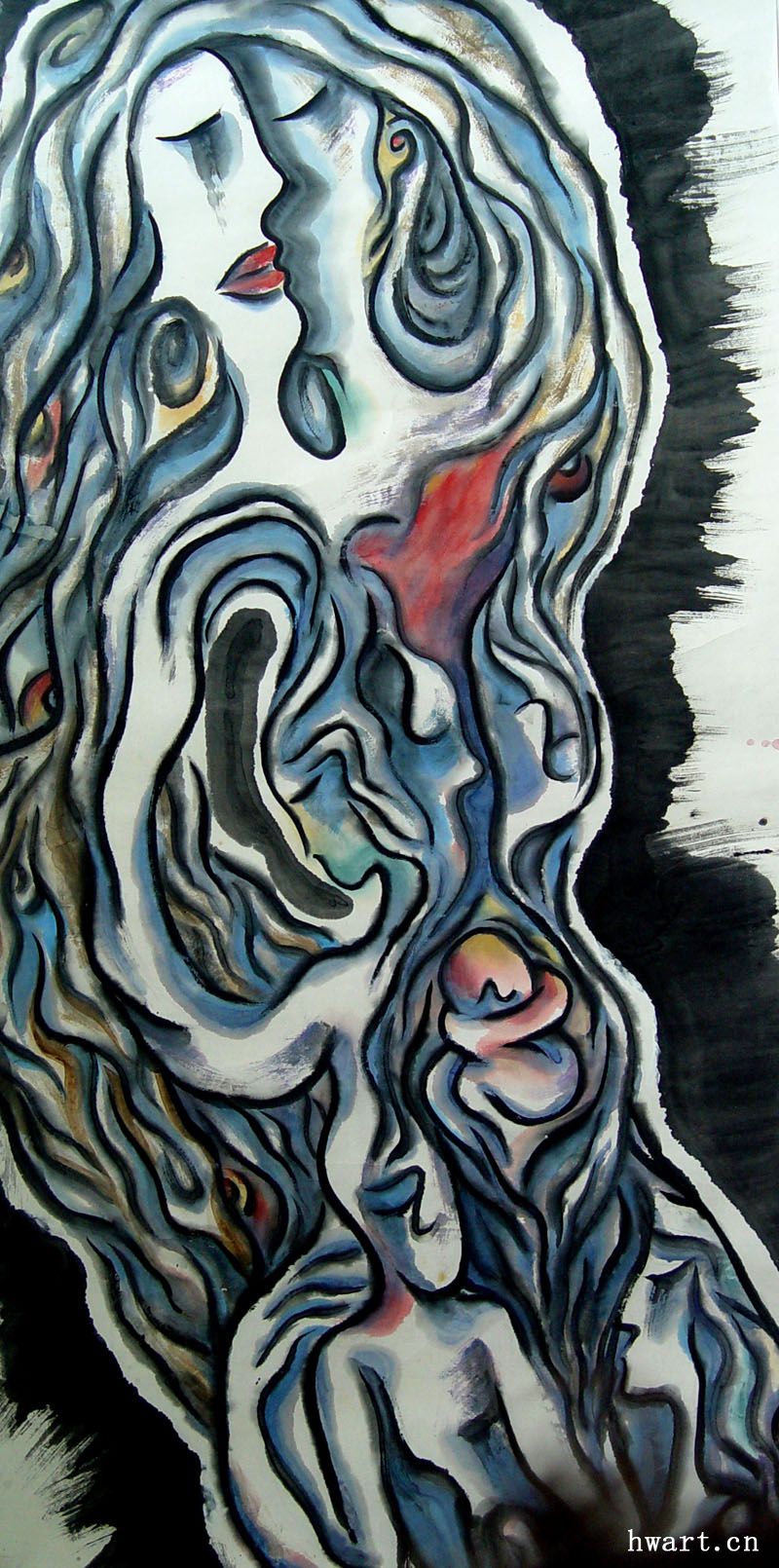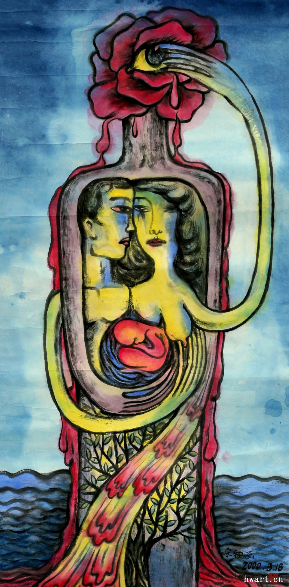 《玫瑰淚 · 一》彩墨 2000年(67x134cm)