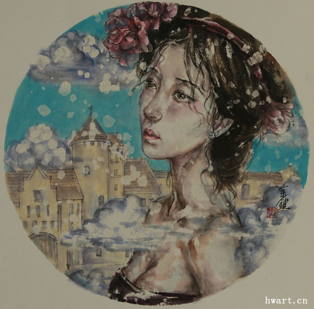 《天空之城2》工筆重彩68X34CM)