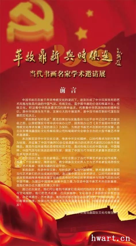 “革故鼎新與時(shí)俱進(jìn)”展覽的策劃與實(shí)施是在習(xí)近平總書記召開文藝座談會(huì)之后,以貫徹落實(shí)今年中共中央辦公廳、國務(wù)院辦公廳《關(guān)于實(shí)施中華優(yōu)秀傳統(tǒng)文化傳承發(fā)展工程的意見》為契機(jī),為推進(jìn)書畫藝術(shù)在新時(shí)代的發(fā)展,由北京澎博瑞鑫國際文化傳媒有限公司和瑞萌研究會(huì)聯(lián)合主辦的大型書畫藝術(shù)學(xué)術(shù)邀請展。