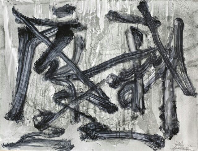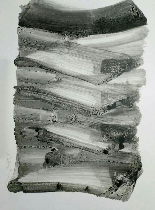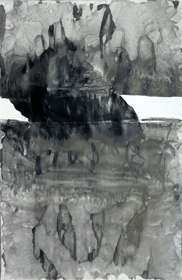 老赫(吳國全 黑鬼)硬紙質(zhì)水墨《水墨思維——天石——與時間有關(guān)嗎?》系列之二十七