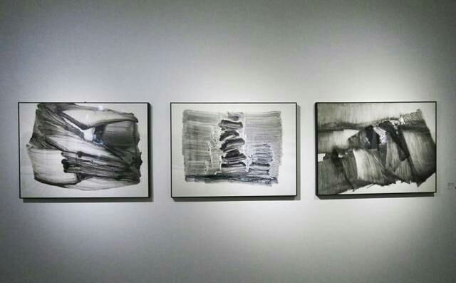 李亞鵬先生的書房懸掛著老赫(吳國全 黑鬼)的水墨畫硬紙質(zhì)作品《水墨思維.天石.與時間有關(guān)嗎?》之二十七 2016年 90cmⅩ119cm