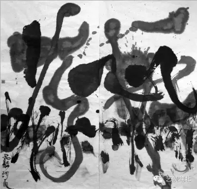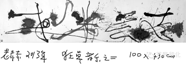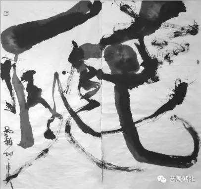 砸墨,不僅僅是砸墨,砸墨是以砸墨為借口,帶出我對(duì)藝術(shù)、對(duì)人生、對(duì)社會(huì)、對(duì)自然、對(duì)宇宙的理解和看法。砸墨,實(shí)際上是我的一個(gè)托詞,它讓我自然而然的去掉在小紙片上的勾、描、點(diǎn)、染、寫(xiě)和繪。取而代之的是在大紙上,大布上,大木板上,大金屬板上,大地上,大墻上等,用力砸,用力錘,用力敲,用力投,用力射,用力碰,用力撞,用力甩,用力抽,用力拽,用力拋,用力頂,用力蹂,用力蹭,用力撒,用力叉,用力撓,用力切,用力捅,用力拍,用力揍,用力砍,用力劈,用力煽,用力磕,用力插,用力搖,用力滾,再加上不同的節(jié)奏,不同的形,不同的背景材料,如在宣紙上,如厚紙板上,如在毛氈上,交響的世界就形成了。一些可以在大背景下完成的動(dòng)作都是砸字可以用的。要砸出層次來(lái),要砸出學(xué)問(wèn)來(lái),要砸出精神來(lái)。我在求丈夫氣、男人味、漢子韻、英雄魂。也想在我這里去掉酸腐小文人的娘娘腔,近漢唐,去軟香,講究沖擊力,講究高速產(chǎn)生的力,講究爆炸產(chǎn)生的沖擊波,(別人我管不著,我也可以去欣賞,如宋代的小花,小草,小蝶,它是以小見(jiàn)大,我則是反其道而行之),聽(tīng)東坡詞,奏稼軒調(diào),放多芬曲,染真卿書(shū),還屈原魂。